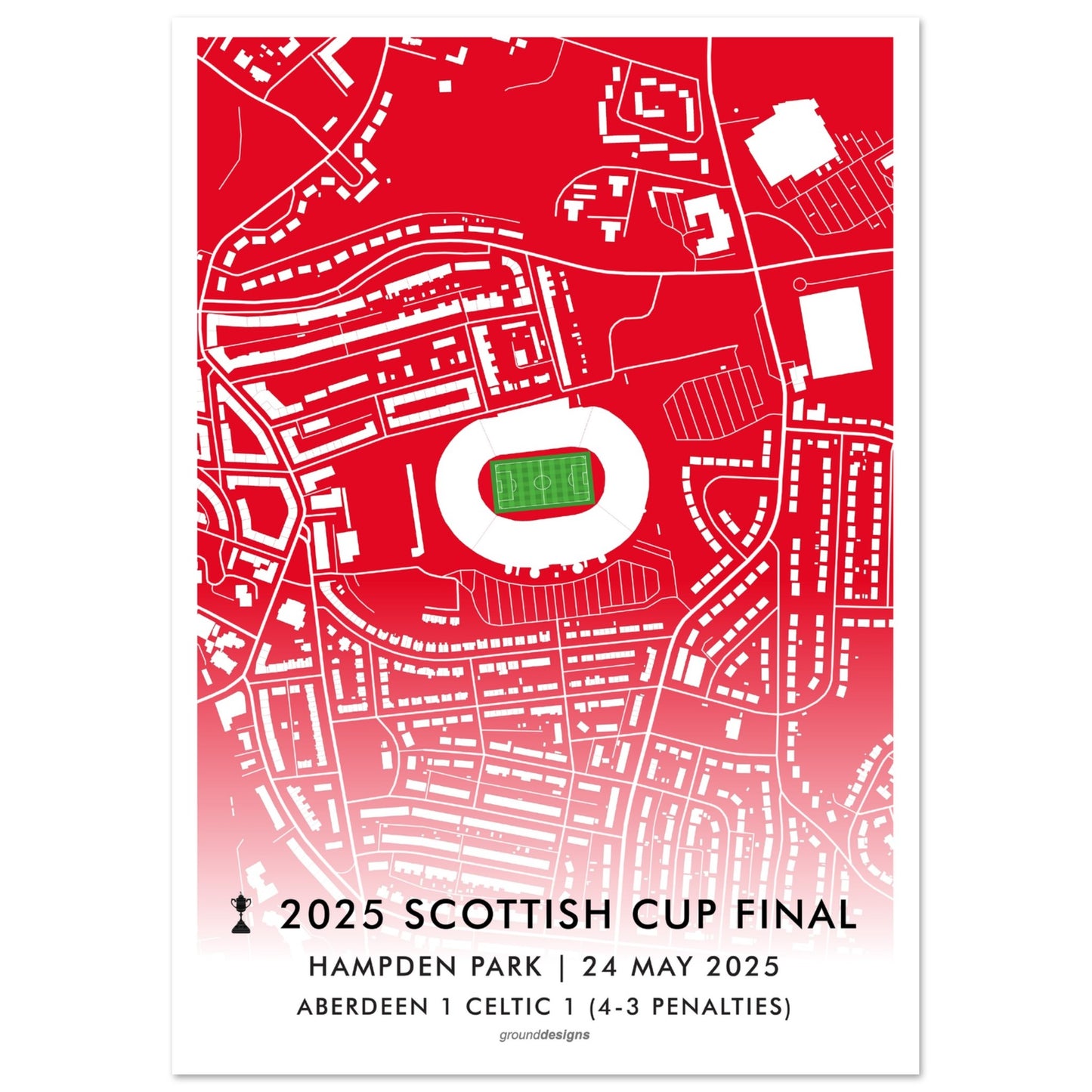 Aberdeen 2025 Scottish Cup Winners Hampden Park Art Print - Stadium Map Edition