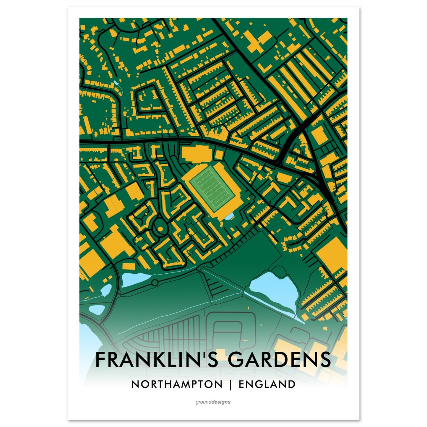 Northampton Saints Rugby Union Franklin's Gardens Art Print - Stadium Map Edition