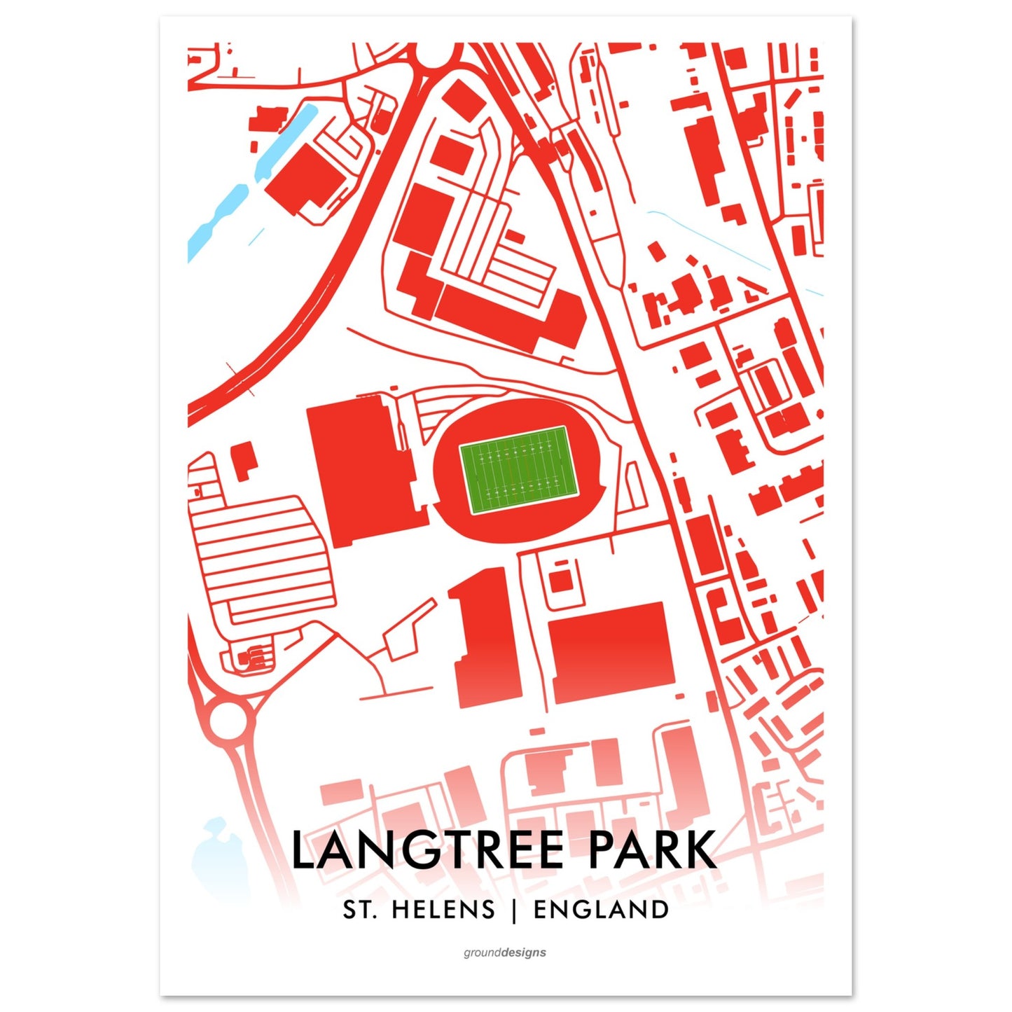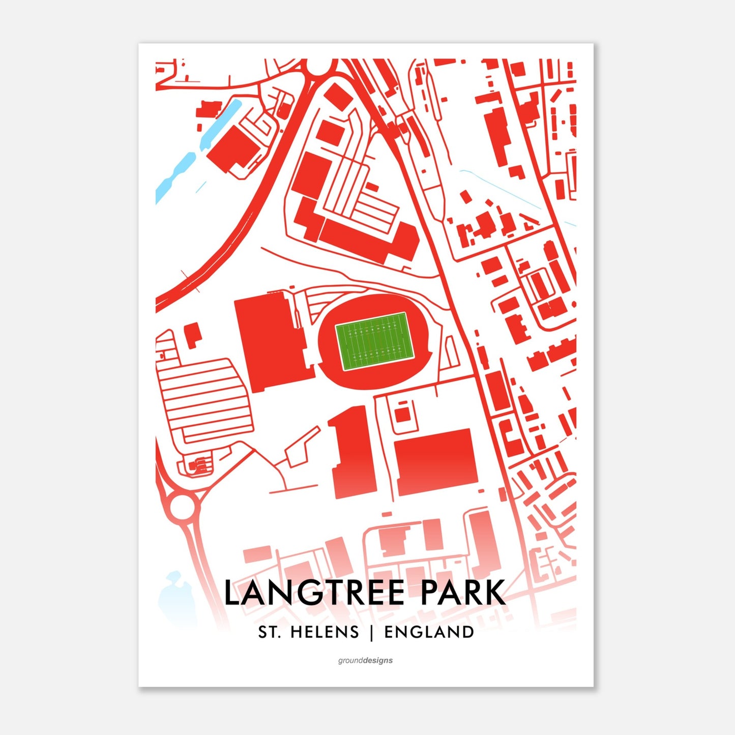 St Helens Saints Rugby League Langtree Park Art Print - Stadium Map Edition